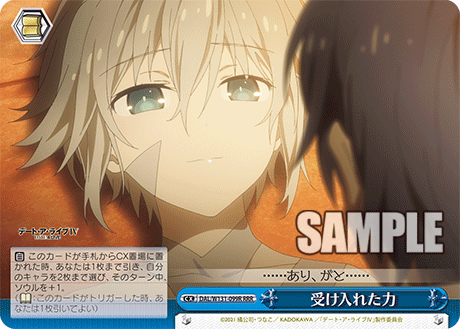 【自】 このカードが手札からCX置場に置かれた時、あなたは1枚まで引き、自分のキャラを2枚まで選び、そのターン中、ソウルを+1。