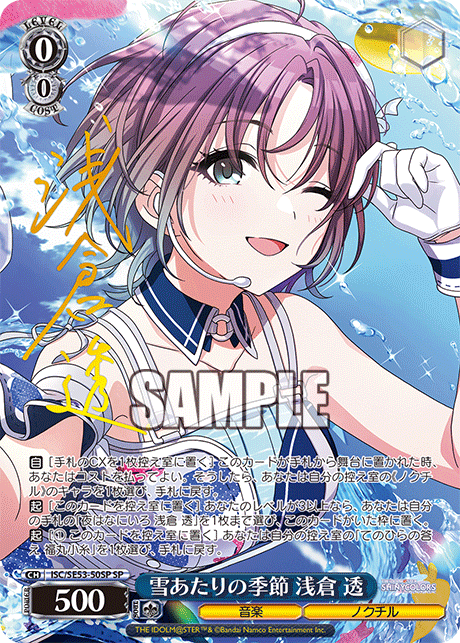 【起】[このカードを控え室に置く] あなたのレベルが3以上なら、あなたは自分の手札の「夜はなにいろ 浅倉 透」を1枚まで選び、このカードがいた枠に置く。