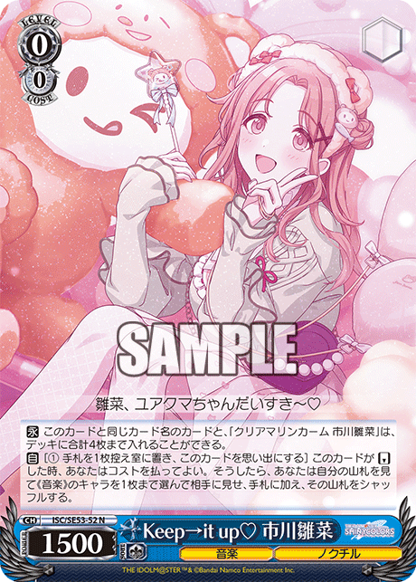 【永】 このカードと同じカード名のカードと、「クリアマリンカーム 市川雛菜」は、デッキに合計4枚まで入れることができる。