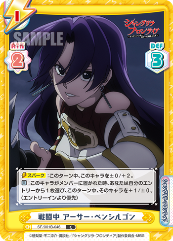 【自】:このキャラがメンバーに置かれた時、あなたは自分のエントリーから1枚選び、このターン中、そのキャラを+1/±0。(エントリーインより優先)