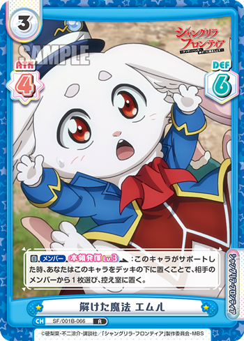 【自】【メンバー】【本領発揮Lv3】:このキャラがサポートした時、あなたはこのキャラをデッキの下に置くことで、相手のメンバーから1枚選び、控え室に置く。