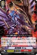 【自】【(V)】:あなたのメインフェイズ開始時、【ソウルチャージ】(1)し、そのターン中、このユニットのパワー+2000。【起】【(V)】:[【ソウルブラスト】(8),【カウンターブラスト】(5)]あなたの《なるかみ》のリアガード1枚につき、相手のリアガードを1枚選び、退却させる。