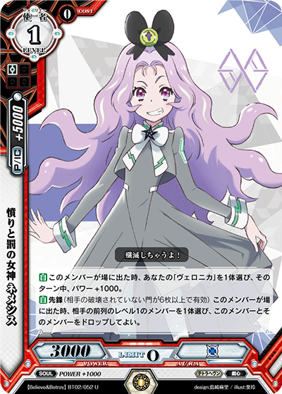[A] When this member enters the Field, choose 1 of your "Veronica", and that member gains +1000 power for the turn.