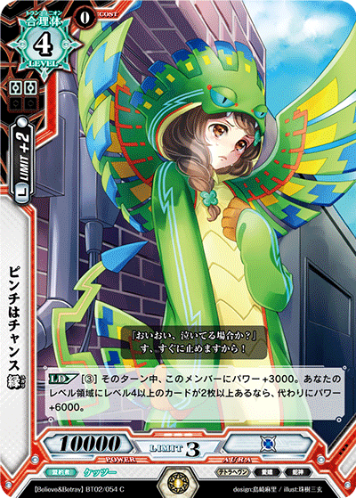 [LD]:[③] そのターン中、このメンバーにパワー+3000。あなたのレベル領域にレベル4以上のカードが2枚以上あるなら、代わりにパワー+6000。