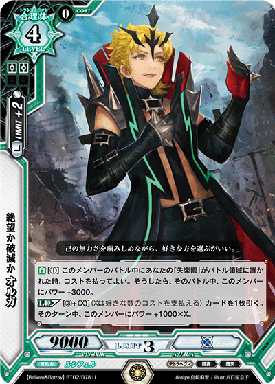 [A] [(1)] When your card named "Satan's Birthday" is placed to the Battle Zone during this member's battle, you may pay cost. If so, this member gains +3000 power for the battle.