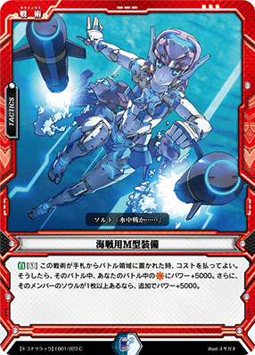 [A]:[①] この戦術が手札からバトル領域に置かれた時、コストを払ってよい。そうしたら、そのバトル中、あなたのバトル中の::Summer:: にパワー+5000。さらに、そのメンバーのソウルが1枚以上あるなら、追加でパワー+5000。