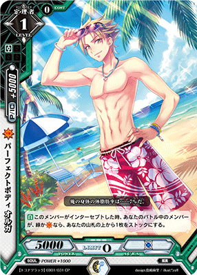 [A] When this member intercepts, if your member in battle is green or ::Summer::, Stock the top card of your Deck.