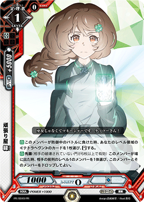 [A] Vanguard: When this member enters the Field, choose 1 of your Opponent's Level 1 members in the front row, and you may Drop this member and that member.