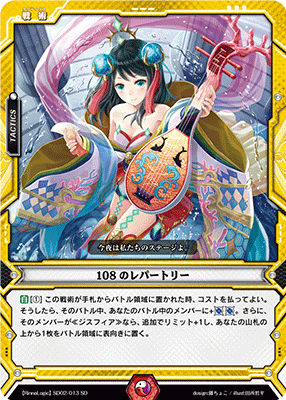 | [A] [(1)] When this tactics is placed from hand to the Battle Zone, you may pay cost. If so, during the battle, your member in battle gains +2 aura. Then, if that member is ::Disfia::, it additionally gains +1 limit, and put the top card of your Deck face-up to the Battle Zone. |