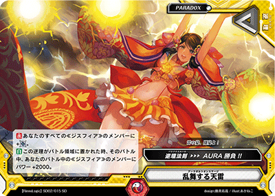 [A] When this paradox is placed to the Battle Zone, your ::Disfia:: member in battle gains +2000 power for the battle.