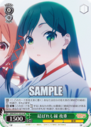 Traits: 縁 (Ties), 巫女 (Miko) 【起】[(1) このカードを控え室に置く] あなたは自分の控え室の「縁結びの組紐」を1枚選び、手札に戻す。 【起】 記憶 [このカードを【レスト】する] あなたの思い出置場に「縁結びの組紐」があるなら、あなたは1枚引き、自分の手札を1枚選び、控え室に置く。 |