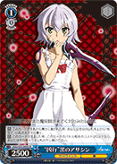 Traits: サーヴァント (Servant), 霧 (Fog) 【自】 このカードが手札から舞台に置かれた時、あなたは自分の山札を上から1枚見て、山札の上か下に置く。 【自】 このカードが【リバース】した時、このカードのバトル相手のコストが0以下なら、あなたはそのキャラを山札の下に置いてよい。 |