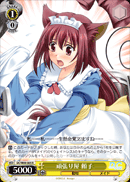 【自】 このカードがアタックした時、あなたは自分の山札の上から1枚を公開する。そのカードが《メイド》か《ウェイトレス》のキャラなら、そのターン中、このカードのソウルを+1。(公開したカードは元に戻す)