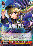 Traits: 音楽 (Music), PeakyP-key (Peaky P-Key) 【自】 あなたがこのカードの『助太刀』を使った時、あなたは自分のバトル中のキャラを1枚選び、そのターン中、次の能力を与える。『【自】 このカードのバトル相手が【リバース】した時、あなたはそのキャラを思い出にする。』 【起】【カウンター】 助太刀3000 レベル2 [(1) 手札のこのカードを控え室に置く] (あなたは自分のフロントアタックされているキャラを1枚選び、そのターン中、パワーを+3000) |