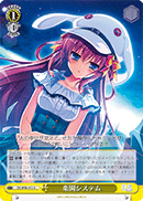 【自】 記憶 [このカードを控え室に置く] あなたの受けたダメージがキャンセルされなかった時、思い出置場にこのカードがあり、そのダメージが3以上なら、あなたはコストを払ってよい。そうしたら、あなたは自分の山札を見て《風南島》のキャラを2枚まで選んで相手に見せ、手札に加え、自分の手札を1枚選び、ストック置場に置き、その山札をシャッフルする。
