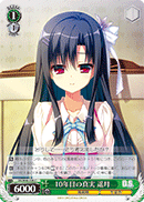 【起】[あなたのキャラを2枚【レスト】する] このカードをストック置場に置く。あなたは自分の控え室の「水着の遥月」を1枚選び、このカードがいた枠に置く。