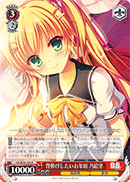 | [C] For each of your other ::Kazanashima:: Characters, this gains +500 Power. [A] This ability activates up to once per turn. During the turn this is placed from hand to the Stage, when the Battle Opponent of this becomes Reversed, put the top card of your Library in the Waiting Room. If the card put in the Waiting Room this way has at least 1 Soul Trigger Icon, Stand this. | |
