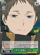 【自】【CXコンボ】あなたのクライマックス置場に「桜の花が咲く頃に」が置かれた時、前列にこのカードがいるなら、あなたは他の自分のキャラを1枚と、このカードを選び、そのターン中、パワーを+3000し、《指輪》を与える。