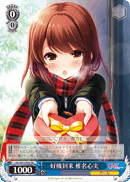 Traits: ガール (Girl) 【永】 相手のターン中、他のあなたのキャラすべてに、パワーを+500。 【自】[(1) あなたの山札の上から1枚をクロック置場に置く] このカードが手札から舞台に置かれた時、あなたはコストを払ってよい。そうしたら、あなたは1枚引く。 |