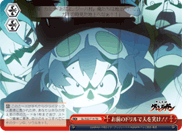 【自】 このカードが手札からクライマックス置場に置かれた時、あなたは自分の控え室の赤のカードを1枚まで選び、ストック置場に置き、自分のキャラすべてに、そのターン中、ソウルを+1。