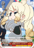 Traits: フレンズ (Friends), 盾 (Shield) 【自】[(1)] アンコールステップの始めに、他のあなたの前列の【レスト】しているキャラがいないなら、あなたはコストを払ってよい。そうしたら、このカードを【レスト】する。 |