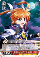 【自】 バトル中のこのカードが【リバース】した時、あなたは自分の山札の上から3枚までを、公開してよい。1枚以上公開したなら、あなたはそれらのカードのカード名に「なのは」か「フェイト」を含むキャラを1枚まで選び、手札に加え、残りのカードを控え室に置き、自分の手札を1枚選び、控え室に置く。