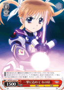 Traits: 魔法 (Magic), 武器 (Weapon) 【永】 他のあなたの、《魔法》か《武器》のキャラすべてに、パワーを+500。 【自】 あなたのクライマックスフェイズの始めに、あなたは自分のカード名に「なのは」を含むキャラを1枚選び、そのターン中、パワーを+500。 |