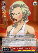 【自】[(3)] あなたがこのカードの『助太刀』を使った時、あなたはコストを払ってよい。そうしたら、あなたは相手の、レベルが相手のレベルより高いキャラを1枚選び、控え室に置く。 【起】【カウンター】 助太刀2500 レベル2 [(1) 手札のこのカードを控え室に置く] (あなたは自分のフロントアタックされているキャラを1枚選び、そのターン中、パワーを+2500) |