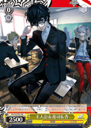 Traits: 怪盗 (Phantom Thief), メガネ (Glasses) 【自】 このカードのバトル相手が【リバース】した時、相手の前列のキャラが2枚以下なら、あなたは他の自分のキャラを1枚選び、【レスト】し、後列のキャラのいない枠に動かす。 |