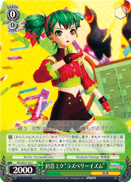 Traits: 音楽 (Music) 【自】[あなたの山札の上から1枚をクロック置場に置き、手札を1枚控え室に置く] このカードが手札から舞台に置かれた時、あなたはコストを払ってよい。そうしたら、あなたは自分の山札を見てクライマックスを1枚まで選んで相手に見せ、手札に加え、その山札をシャッフルする。 |