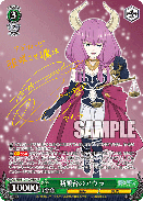 【自】【CXコンボ】 あなたのクライマックス置場に「服従の天秤」が置かれた時、前列にこのカードがいて、他のあなたの、《冒険者》か《魔法》のキャラが4枚以上なら、あなたはこのカードの正面のキャラを1枚選び、このカードのパワーより選んだキャラのパワーが低いなら、そのキャラをクロック置場に置く。高いなら、このカードをクロック置場に置く。