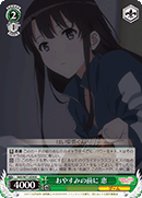 | [C] ASSIST All your Characters in front of this gain +X Power. X = 500 times Level of that Character. [A] [(1) Send this to Memory] At the beginning of your Climax Phase if you are Level 3 or higher, you may pay cost. If so, choose a "Megumi, New Story" in your Waiting Room and place it to the slot this was in. | |