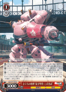 Traits: 華撃団 (Combat Revue), 剣術 (Kenjutsu) 【自】 このカードが手札から舞台に置かれた時、あなたは自分の控え室の「蒼天に咲く剣 さくら」を1枚選び、このカードの下にマーカーとして表向きに置いてよい。 【自】 このカードがアタックした時、このカードの下にマーカーがあるなら、そのターン中、このカードのパワーを+X。Xは相手のキャラの枚数×500に等しい。 【自】[(1) このカードを思い出にする] バトル中のこのカードが【リバース】した時、このカードの下にマーカーがあるなら、あなたはコストを払ってよい。そうしたら、あなたは自分の控え室の、「正義の為に さくら」か「“霊子戦闘機・試製桜武”」を1枚選び、手札に戻す。 |