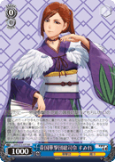 | [A] When this is placed from hand to the Stage, put the top 2 cards of your Library into the Waiting Room. If there was a Climax among them, choose up to 1 ::Combat Revue:: Character in your Waiting Room and put it in Stock. [A] [(1) Put the top card of your Library in your Clock] When this is placed from hand to the Stage, you may pay cost. If so, choose a Level 1 or lower Character in your Waiting Room and return it to your hand. | |