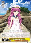 Traits: サマポケ (Summer Pockets), 時間 (Time) 【永】 あなたのターン中、他のあなたの前列の中央の枠の《サマポケ》のキャラに、パワーを+1000。 【起】 集中 [(1) このカードを【レスト】する] あなたは自分の山札の上から4枚をめくり、控え室に置く。それらのカードのクライマックス1枚につき、次の行動を行う。『あなたは2枚まで引き、自分の手札を1枚選び、控え室に置く。』 |