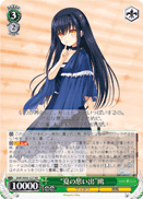 [A] When this is placed from hand to the Stage, you may put the top card of your Clock in the Waiting Room. [A] CX COMBO [(1)] When "Starting Point" is placed in your Climax Zone, if this is in the Front Row, you may pay cost. If so, this gains 1000 Power for the turn, and perform one of the following effects of your choice. "Put all of your Opponent's Stock in the Waiting Room, and your Opponent puts the same number of cards from top of his or her Library in his or her Stock." "This gains the following ability for the turn. '[A] When the Battle Opponent of this becomes Reversed, you may put that Character in Clock.'"