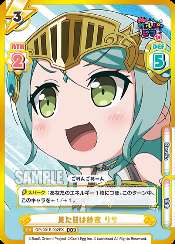 GP/001E-002EX 見た目は紗夜 リサ Lisa, Looks Like Sayo Cost: 3 Rarity: EXR Cardtype: Character Traits: Music (音楽) / Roselia (Roselia) ATK: 2 DEF: 5 [Spark]: For the turn this gains +1/+1 for each of your Energy. ごめんごめーん 【スパーク】:あなたのエネルギー1枚につき、このターン中、このキャラを+1/+1。 |
