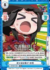 GP/001E-005 見た目は燐子 紗夜 Sayo, Looks Like Rinko Cost: 5 Rarity: PR Cardtype: Character Traits: Music (音楽) / Roselia (Roselia) ATK: 5 DEF: 7 [A] When this is Retired from your Opponent's Attack, if your Retire is greater than your Opponent's, choose a ::Roselia:: with [Blocker] in your Waiting Room and return it to your hand. 【自】:このキャラが相手のアタックでリタイアした時、あなたのリタイアが相手より多いなら、あなたは自分の控え室から【ブロッカー】を持つ〔Roselia〕を1枚選び、手札に戻す。 |