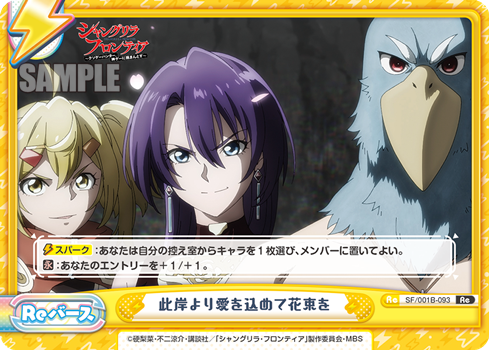 【スパーク】:あなたは自分の控え室からキャラを1枚選び、メンバーに置いてよい。