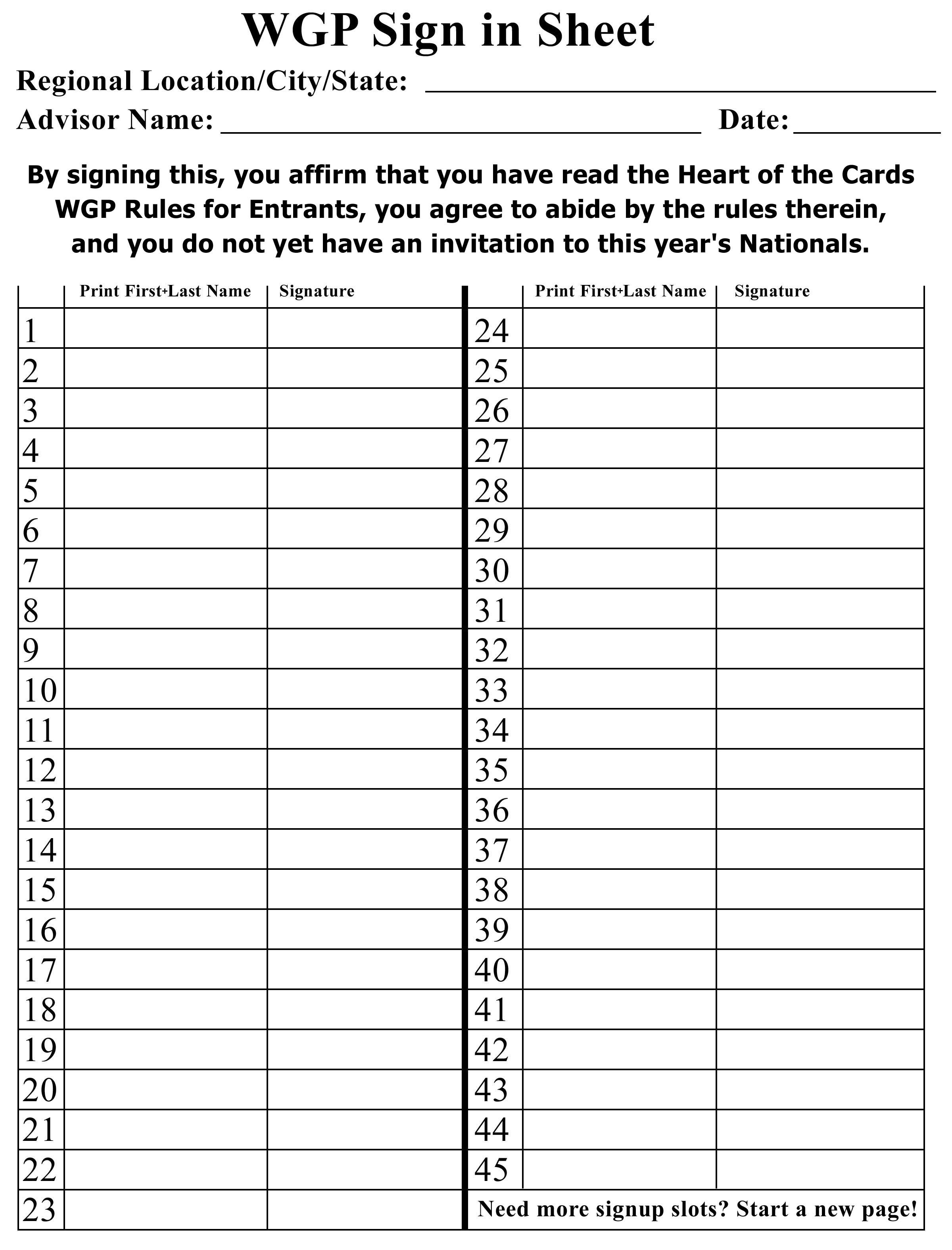 __ Prepare a sufficient amount of Player slips (1 per seat or 1 per preregister + 50%, whichever is greater, download here)